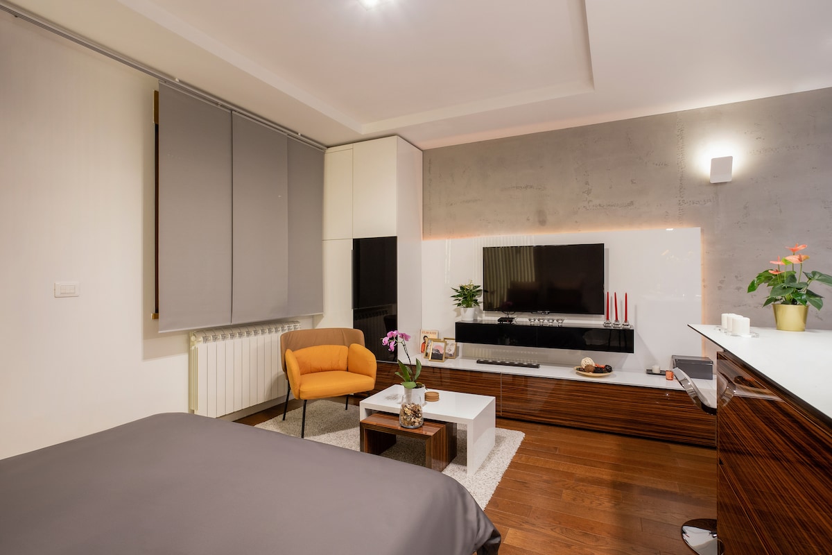 Estudio de diseño luminoso, cálido y elegante situado en una de las mejores zonas de Belgrado, cerca del centro de la ciudad y de las principales estaciones de transporte. El apartamento estudio ha sido completamente renovado en marzo de 2019. Ideal para viajeros solteros o parejas a las que les encanta viajar con un presupuesto ajustado, pero con estilo.