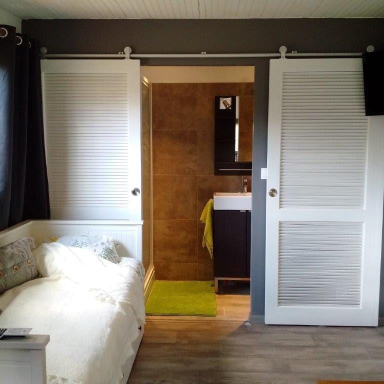 L'Officine es un paréntesis confidencial diseñado para parejas que buscan evasión, sensualidad y reconexión. El ambiente acogedor, las luces tenues y la decoración elegante componen un universo chic e inmersivo. Disfrute de un spa privado con balneario, ducha a ras de suelo y zona de estar para relajarse. Alojamiento 100% privado con acceso independiente para una discreción total... y una habitación secreta para descubrir en pareja, para una experiencia única, íntima e inolvidable.