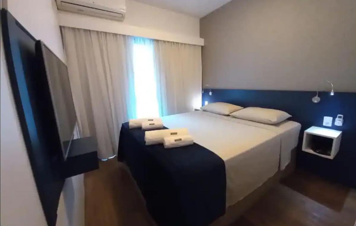 Departamento de lujo, 26 m² de ambiente acogedor y Wi-Fi. Piso 11. A 5 minutos a pie de la AVENIDA PAULISTA y del metro. Recepción 24/7 Superanfitrión + 170 reseñas [MOTIVOS PARA RESERVAR ESTE DEPARTAMENTO] - Estructura completa alrededor del departamento: restaurantes, mercados, centro comercial, parque, metro, hospitales y farmacias - Departamento ubicado en el entorno seguro de un hotel de 4 estrellas que cuenta con una infraestructura completa con 2 restaurantes, gimnasio, piscina y sauna - Despensa, 2 camas o 1 cama king size, aire acondicionado