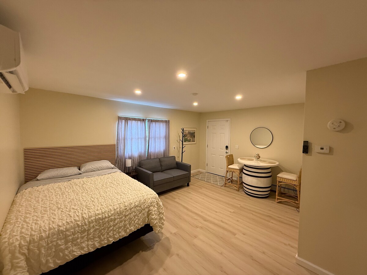 Welcome to our charming one-bedroom guest house, perfect for couples or solo travelers looking for a cozy and private retreat. Nestled in a peaceful neighborhood, this inviting space offers all the comforts of home. Escape to our charming guesthouse, steps away from a serene beach and a charming town. Conveniently located near Long Island ferries, it's the perfect base for your island adventures. Enjoy comfort, privacy, and the best of coastal living!