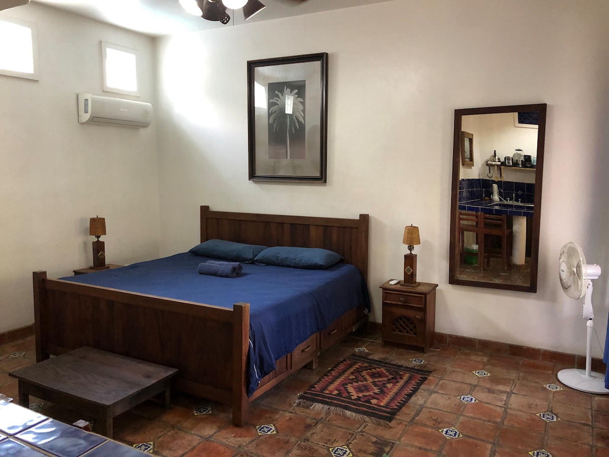 Increíble nuevo Departamento tipo Studio ideal para un huesped o parejas, disfrutarás de una cama king, Smart Tv, conexión Wifi de alta velocidad, baño privado y acceso a una terraza y alberca privadas asi como un roof top para el sunset. A tan sólo 3 cuadras de la playa Zicatela y 3 cuadras de La Punta, esta suficientemente lejos del ruido para descansar pero cerca para poder caminar al area comercial La suite cuenta con persianas black out para maximizar el descanso Bienvenidos a reservar