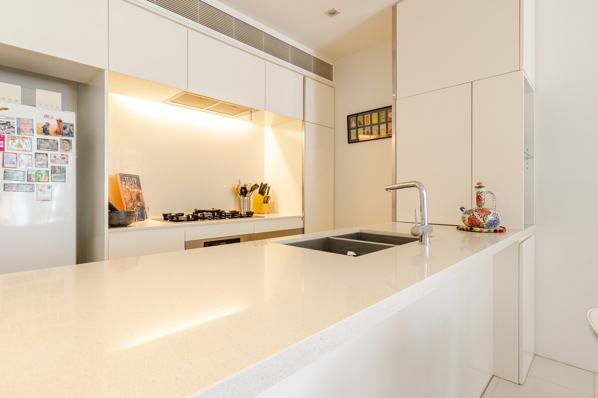 Alójate en el corazón de Bowen Hills, a unos pasos de los restaurantes de King Street, Strike Bowling y a 1 minuto a pie de Brisbane Showgrounds. Este elegante apartamento iluminado por el sol tiene capacidad para 4 personas con cama tamaño queen y un lujoso sofá cama en la sala de estar (ver fotos). Totalmente equipado con cocina, lavandería, wifi, TV inteligente y aire acondicionado. A solo 10 minutos a pie de RBWH, la estación de Bowen Hills y Fortitude Valley. Perfecto para parejas, familias o viajes de trabajo, tu acogedora base para explorar Brisbane. Diseñado para 2 personas, pero con capacidad para 4.