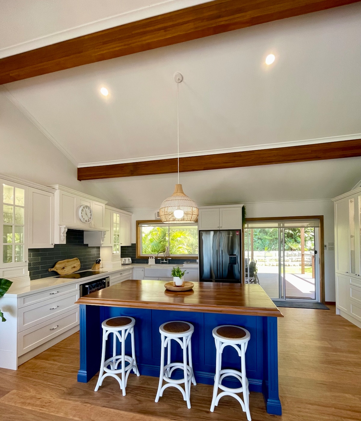Al llegar a través de puertas antiguas, pasee por la pasarela cubierta de glicinas hasta su hogar lejos de casa. El área cubierta al aire libre con espacio de comedor/sala de estar, iluminada por las noches con faroles de seda, te invita a salir para una ocasión especial. Casa de campo llena de luz, salón-comedor de planta abierta. El dormitorio cuenta con una lujosa cama tamaño queen para una noche de sueño reparador. El baño invita a la indulgencia con una ducha de lluvia tropical. Cocina totalmente equipada con lavadora. Detalles bien pensados en todas partes.