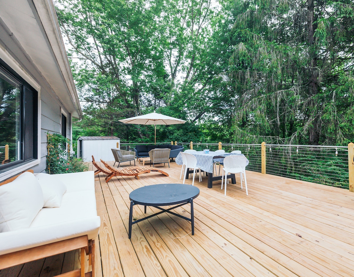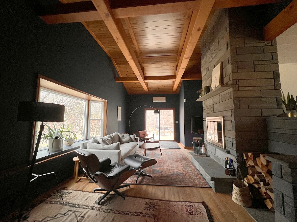 A modern 3BR/2BA Catskills retreat on 6 private acres with a hot-tub, and fireplace. Perched on a hill, this single-level home offers serenity, scenic views, mid-century modern decor, and comfort—ideal for girls' trips, couples and families. Amenities: Fireplace Hot Tub Spa Mini Ping-Pong Dart Board High-speed Wi-Fi Narrowsburg Offers: -Restaurants & Shops -Luxury Spas & Yoga -Alpaca Farm -Hiking -Farmer's Markets -Delaware Valley Arts Alliance Experience the best of the Catskills!