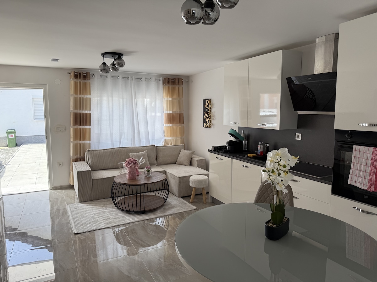 Uživajte u modernom i ugodnom smještaju smještenom u samom centru Sibinja. Apartman je idealan za kraći odmor, poslovna putovanja ili obiteljski boravak. Sve što vam je potrebno nalazi se u neposrednoj blizini – trgovine, kafići i ostali sadržaji. Grad Slavonski Brod udaljen je samo 10 minuta vožnje automobilom, što ovu lokaciju čini odličnim izborom za goste koji žele mirno mjesto za odmor, a opet biti blizu grada.
