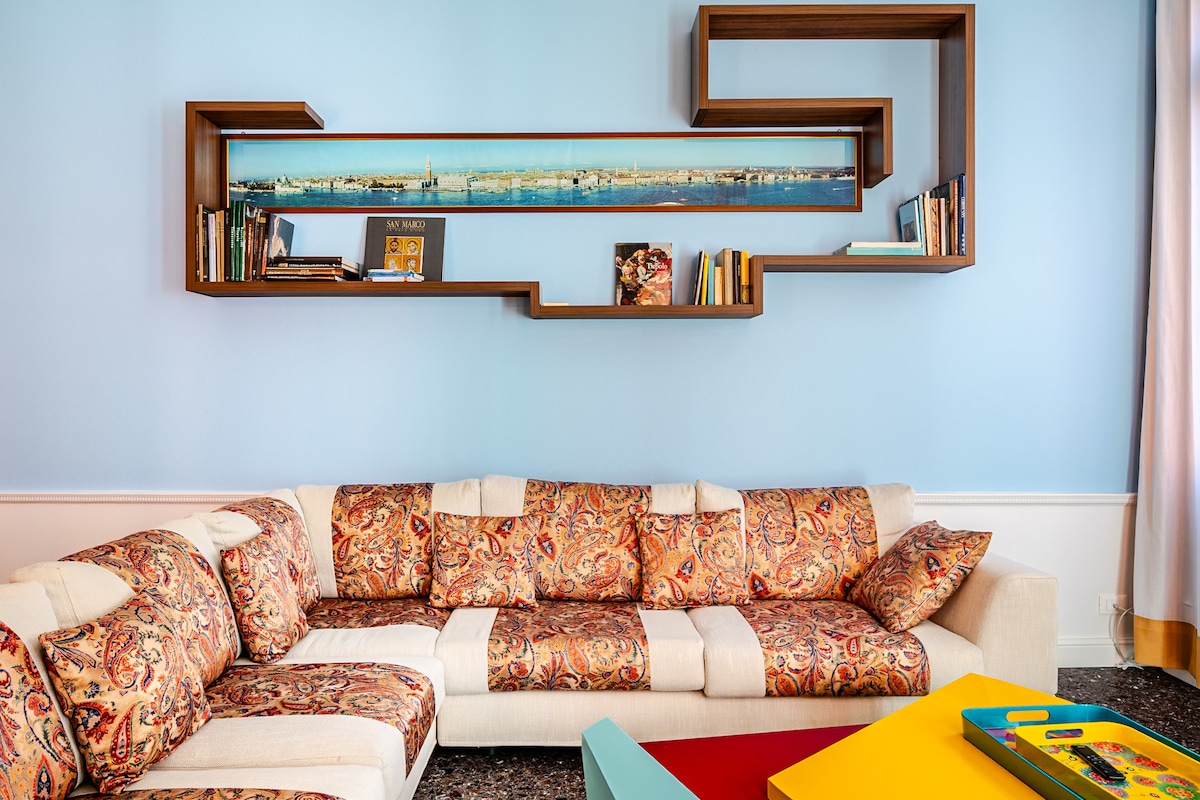 My apartment is spacious -140 sq.meters-and bright in an historical palace in the very center of Venice. There is a large double bedroom with its own bathroom , another smaller double bedroom and a single bedroom with a second bathroom. The kitchen is fully equipped and there is a table where you can have breakfast or meals. In the wide living room there is a table for 6 and 2 large sofas. From here you have access to a nice terrace with table and chairs where you can relax after sightseeing!!!