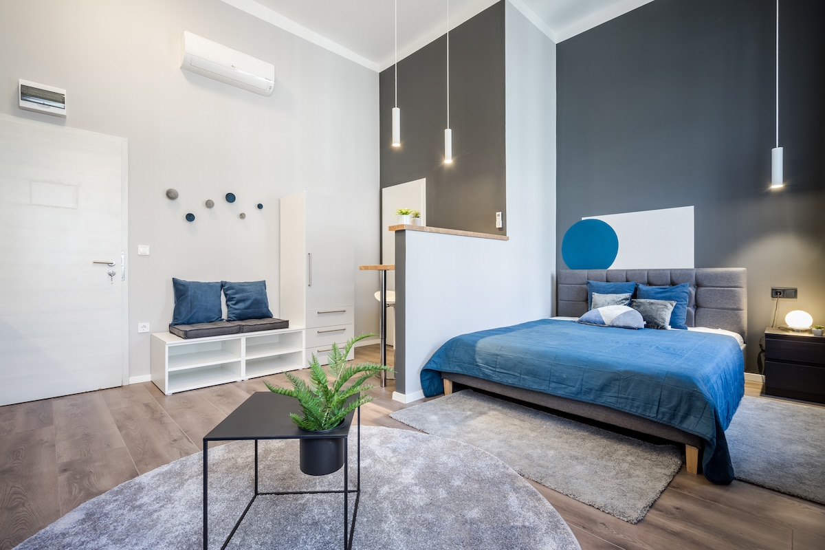 Loft elegante en el centro de Budapest con techos altos, espacio de trabajo y aire acondicionado. Cuenta con bañera, cocina completa, comodidades para bebés y entrada privada. Ideal para parejas, familias o estancias largas. Cerca de la vida nocturna y el transporte, con acceso por ascensor y cortinas opacas para un buen descanso.