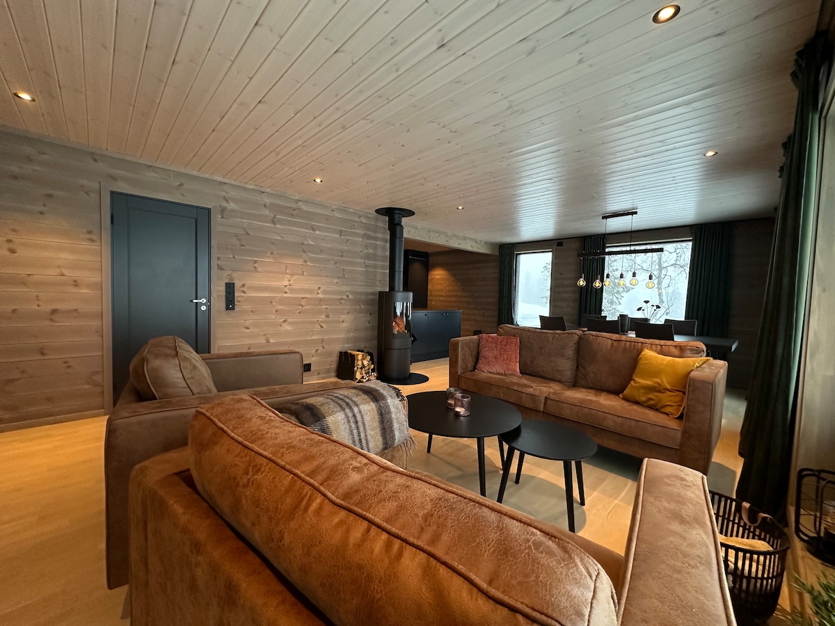 Acogedora y moderna cabaña familiar en un país de las maravillas de invierno