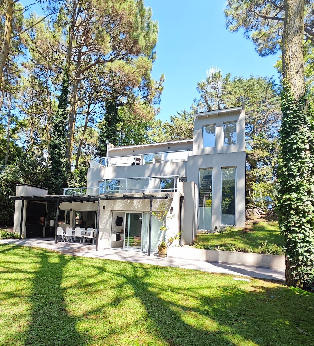 Casa en barrio privado inaugurada en marzo de 2022, diseño único mid-century modern. Amplia, funcional y acogedora. Aire frío/calor en todos los ambientes. Calefacción por losa radiante. Gran parrilla, anafe y horno eléctricos, artefactos de 1ra, aberturas doble vidrio y galería con los mejores atardeceres por su orientación Noroeste. Jardin con salida a amplia laguna. Cama California king en suite. Colchones de 1ra. Wifi alta velocidad. ::No se permiten eventos, mascotas o invitados extra