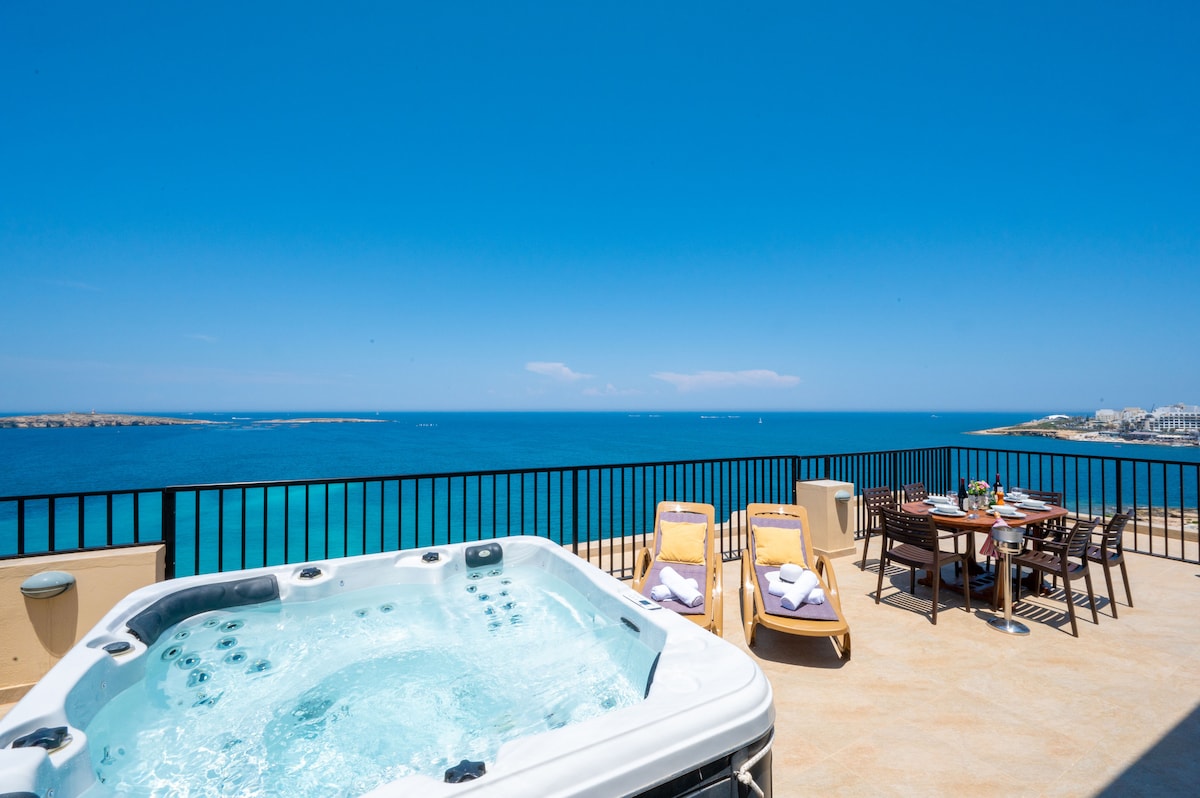 Ático con vistas al mar en Qawra: 2 dormitorios espaciosos