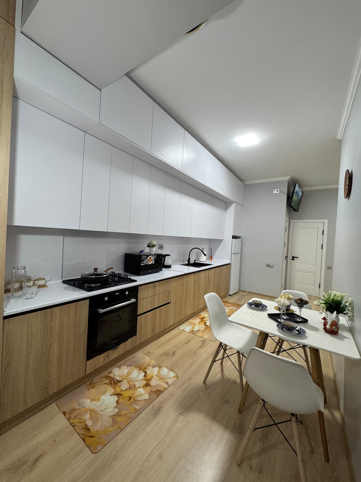 Enjoy a modern, spacious 87 m² apartment in the heart of the city, just steps from Bukhara Mall. The apartment features 2 bright rooms with 1 king-size bed and 2 single beds—perfect for families or groups. Cook at home in a fully equipped kitchen with all utensils, a large fridge, and enjoy free Wi-Fi ,TV and washing machine. Located in a lively area close to shops, cafes, and everything you need for a comfortable and convenient stay.