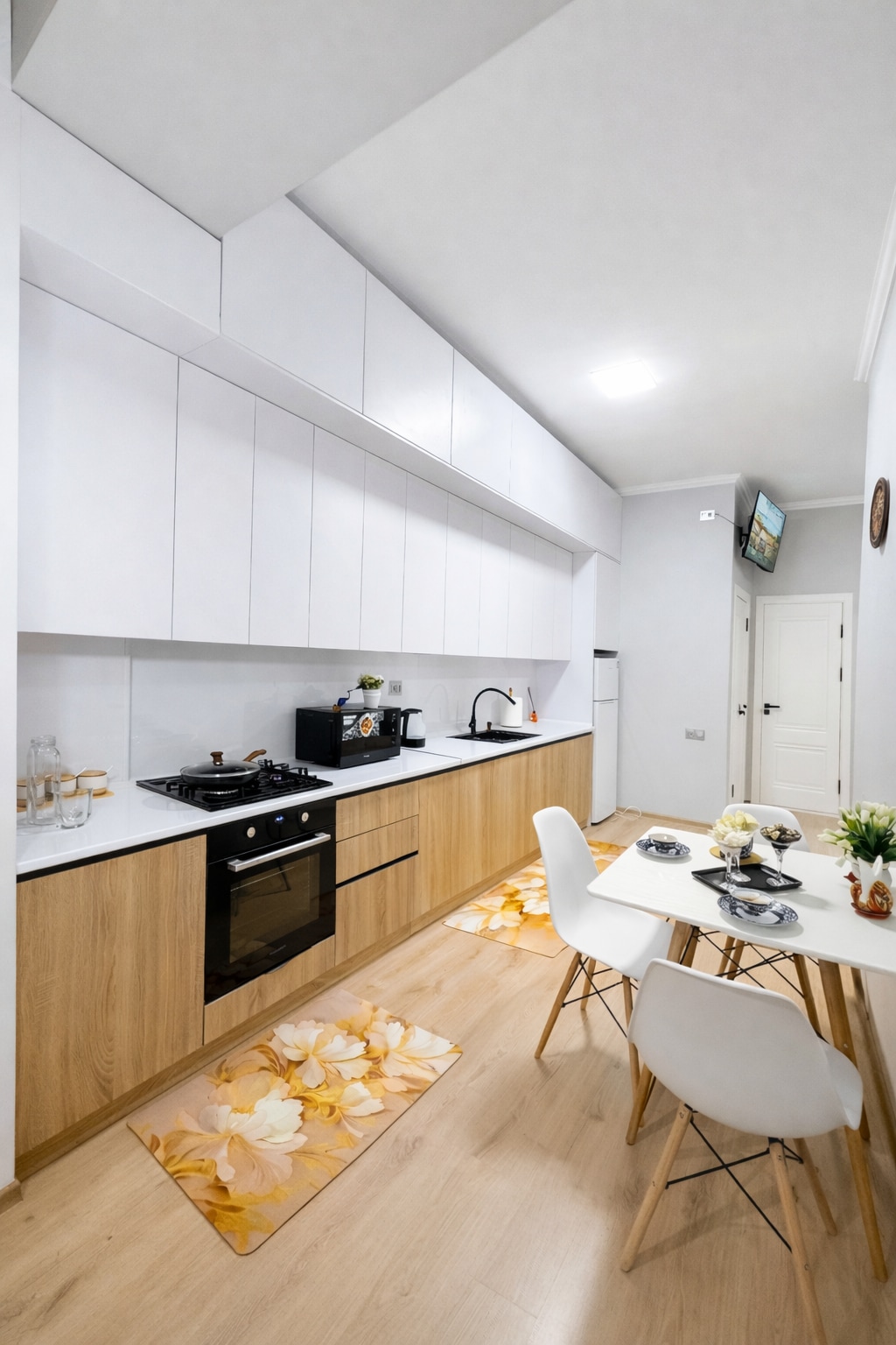 Apartamento céntrico, totalmente amueblado y completamente nuevo a poca distancia (15 min/1,4 km) del casco antiguo de Bujará. Disfruta de un alojamiento entero para cocinar, lavar la ropa y descansar entre viajes. Disfruta de este apartamento espacioso y moderno. 1 dormitorio, 1 baño con lavadora. Amplio salón con sofá cama convertible para 2 personas adicionales, cocina con nevera, horno y otros electrodomésticos básicos.
