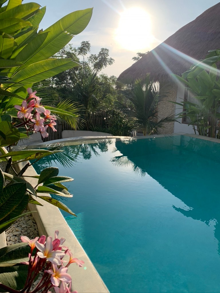 Ubicado mágicamente en lo alto del acantilado de Impossible Beach, con una impresionante vista de 180 grados del océano Índico. Esta propiedad está diseñada artísticamente con un concepto de casa del árbol tropical que se mezcla en un tono suave inspirado en la tierra que crea un entorno acogedor y tranquilo mientras disfruta de los elementos naturales de la selva y el océano. Esta suite de luna de miel con una encantadora piscina pequeña y una red de hamacas instaladas en el balcón privado para que disfrutes de cada pequeño momento con tus seres queridos.