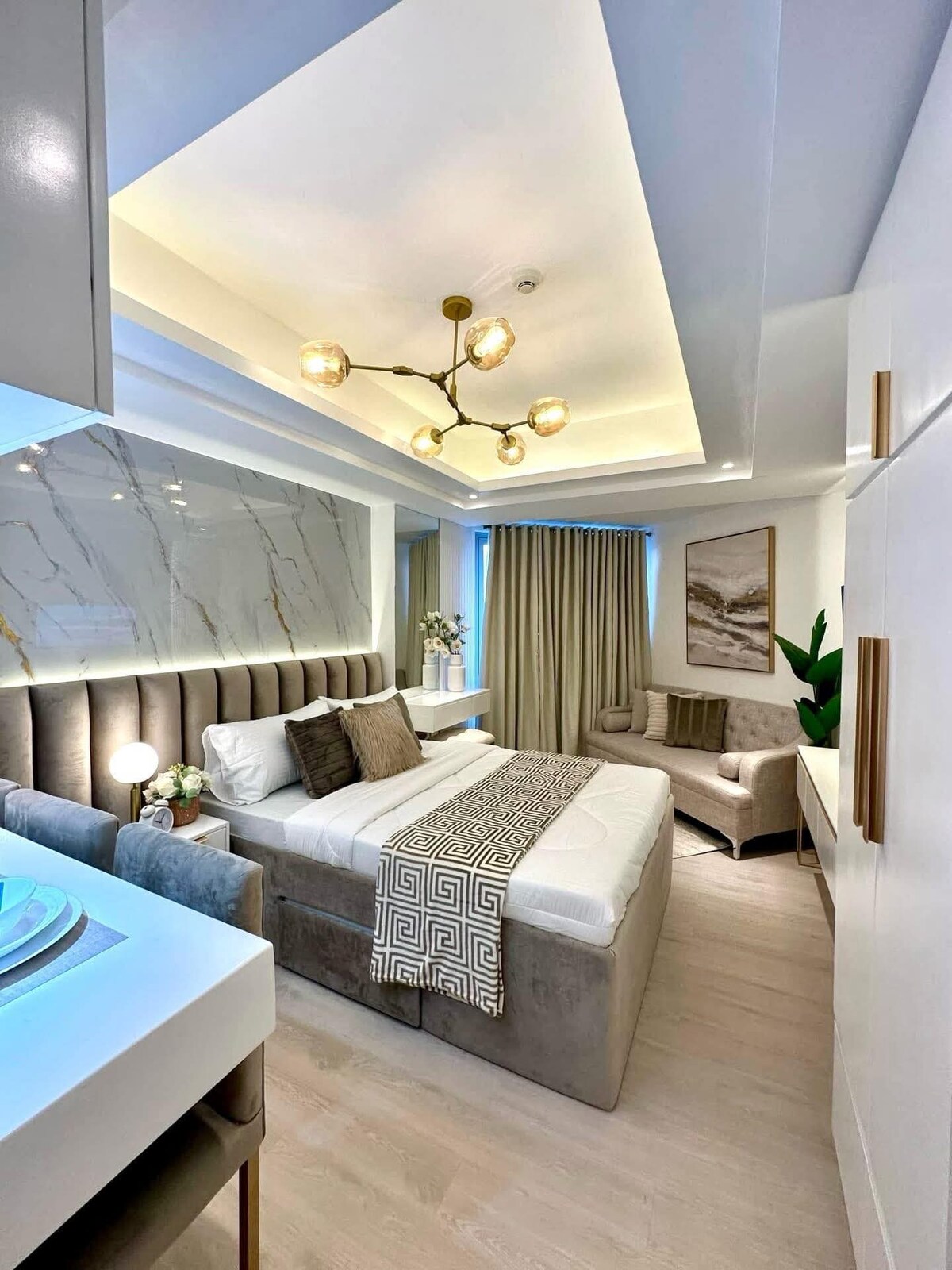 Escápate a un moderno refugio romántico en Azure North Pampanga. Esta elegante unidad cuenta con un amplio balcón con impresionantes vistas a la piscina y a la ciudad, perfecto para tus noches de vino o café por la mañana. Disfruta de interiores acogedores, iluminación ambiental y un ambiente sereno ideal para parejas, familias o personas que viajan solas. Ubicado en un edificio de primera calidad con servicios de estilo resort. Tus vacaciones de ensueño comienzan aquí.