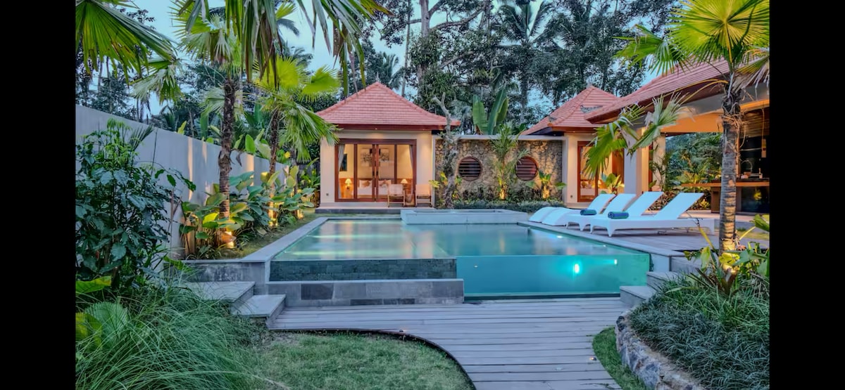 Amplia, lujosa, totalmente equipada y con personal, ubicada en un acre de exuberantes jardines frente al mar. Piscina infinita de 18 m, jacuzzi, bale y fuentes de agua. Frente a la playa a 40 m. Cocina moderna, cómodas salas de estar interiores y exteriores. 8 dormitorios con aire acondicionado y baño privado en suite. 4 dormitorios se convierten en biblioteca, estudio, gimnasio y salón con vistas al mar. Chef, mucama, mozo, 3 jardineros y seguridad nocturna. Ethernet de 250 Mbps, wifi de 80 Mbps, 2 televisores inteligentes, Netflix. Pueblo a 1 km, Lovina a 25 min. Coche de 6 plazas con conductor de alquiler. Villa CHSE