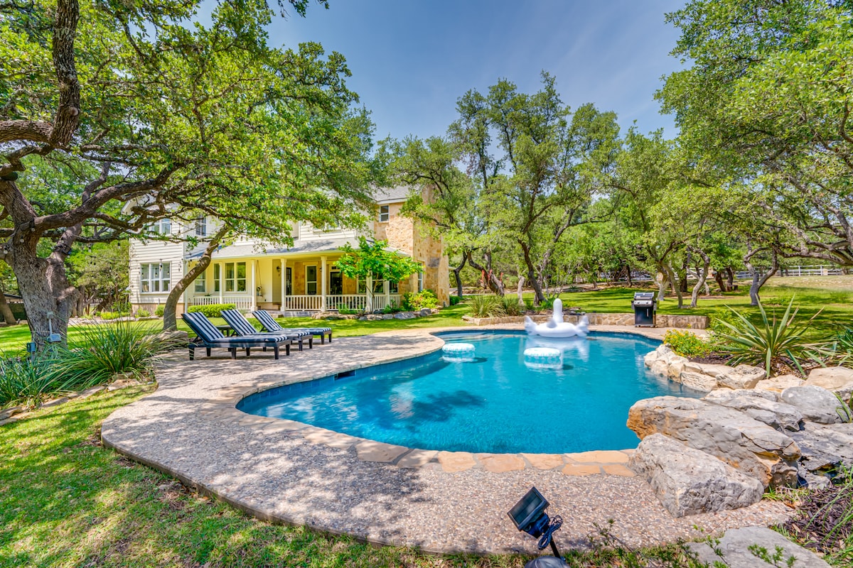 Situada en un acantilado sobre el río Guadalupe, esta casa de huéspedes privada con vistas panorámicas es tu escapada a Hill Country. Esta casa fue diseñada para el descanso, la relajación y la diversión de los huéspedes. Convenientemente ubicado cerca de tiendas, restaurantes y actividades al aire libre, aunque es posible que nunca quieras dejar la paz y la tranquilidad. Situada en un acantilado sobre el río Guadalupe, esta casa de huéspedes privada con amplias vistas es tu escapada a Hill Country. Esta casa fue diseñada para el descanso, la relajación y la diversión de los huéspedes. Convenientemente ubicado cerca de tiendas, restaurantes y actividades al aire libre, aunque es posible que nunca quieras dejar la paz y la tranquilidad. Disfruta de las increíbles vistas del río, el rancho y Hill Country desde la piscina y el spa personalizados. Una de las vistas únicas de Texas en un hogar verdaderamente único hacen de este un destino inolvidable en Hill Country. Mira esta casa en el libro recién publicado «Escapadas espectaculares de fin de semana en Texas» de Jolie Berry de Signature Boutique Books. Refugio en el acantilado en el Guadalupe. En medio de la nada y cerca de todo resume este alojamiento. Muy cerca de tiendas y restaurantes locales. Esta casa de huéspedes se encuentra en 2,5 acres a más de 65 pies de distancia de la casa principal en una comunidad segura y tranquila en Spring Branch, Texas. Úsala como plataforma de lanzamiento para visitar Hill Country, New Braunfels y San Antonio o simplemente quédate y relájate. Este alojamiento fue diseñado y equipado para la mejor estancia. Relájate en la piscina, disfruta del spa, asa un bistec y disfruta de bebidas junto al fuego. - Piscina privada y spa. - Patio privado con chimenea de piedra y asientos al aire libre. - Barbacoa al aire libre. -Cocina totalmente equipada. - Garaje acabado con aire acondicionado, sala de estar tipo «Texas Living Room» con puerta de cristal de vista completa, mesa de billar, sofá, mesa de comedor y sillas, TV de 60 pulgadas, mininevera, máquina de hielo y baño completo. - Ropa de cama y almohadas de alta calidad. Permiso W.O.R.D. #L1442 Los huéspedes tienen acceso a todo el alojamiento. La piscina y el spa también son para uso exclusivo de los huéspedes. La casa es una casa de huéspedes muy privada separada de la casa principal a 65 pies de distancia de la casa principal. Valoro la privacidad de mis huéspedes, pero siempre estoy disponible para responder preguntas o informarte sobre todas las cosas interesantes que hacer por aquí. Este alojamiento se encuentra en un barrio muy tranquilo. Tiene un ambiente muy campestre con ciervos y otra vida silvestre fácilmente visible. La casa solo está disponible en coche y no hay transporte público ni Uber disponible. Esta casa se encuentra a unos 35 minutos del centro de San Antonio. Hay muchos parques y zonas de acceso al río cerca de la casa. Es un sitio ideal para ir en bicicleta y correr con impresionantes colinas y llanuras. Hay excelentes restaurantes y bares locales cerca y a poca distancia en coche.