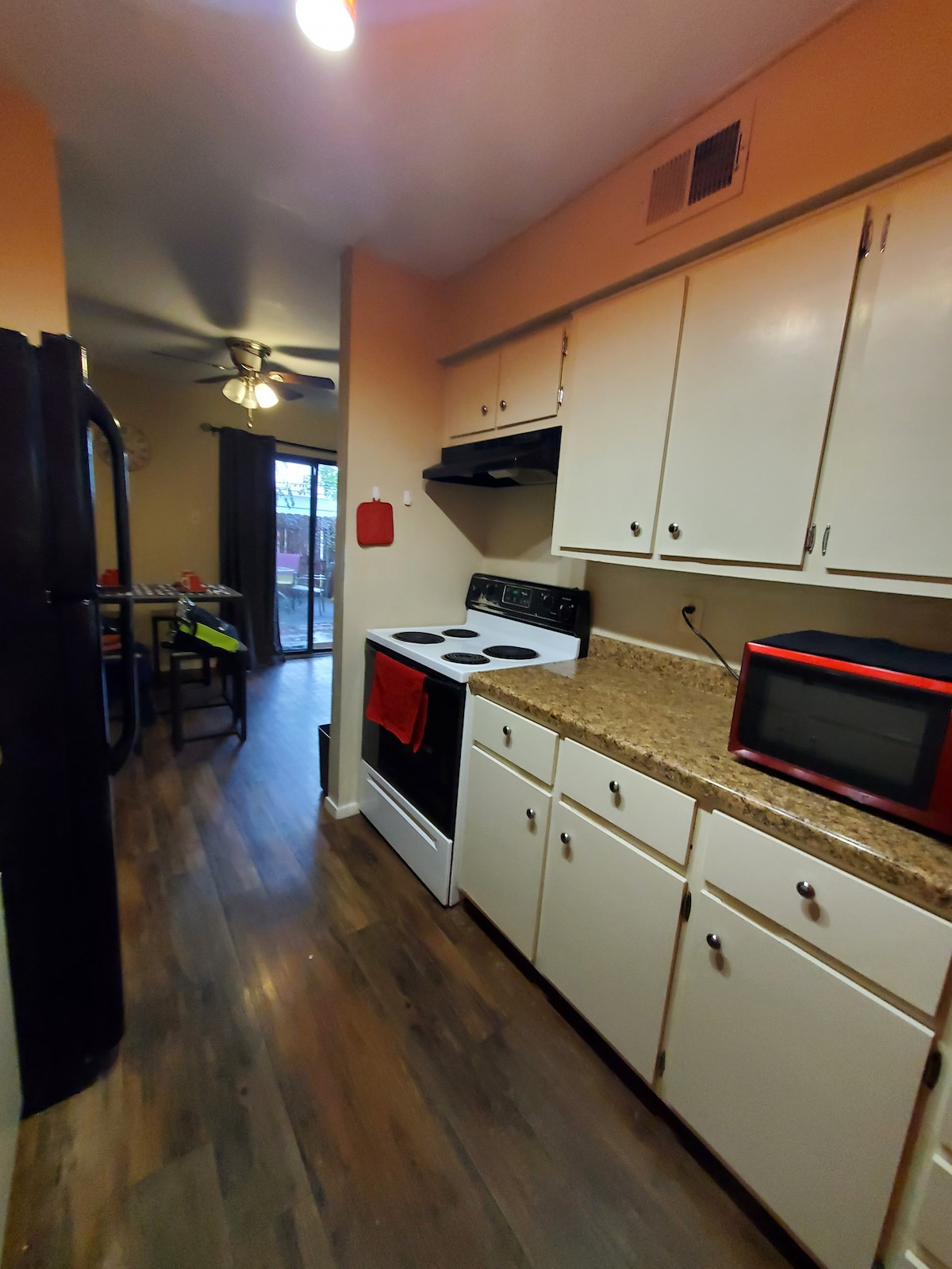Relájate en una nueva casa adosada «Boho Modern» ubicada en el centro histórico de Bryan y a poca distancia a pie de Ronin, Black Water Draw, RX Pizza, The Village, Cilantro, el mercado de agricultores y muchos más restaurantes. Ambos dormitorios tienen camas tamaño king y la habitación principal/sala de estar tienen televisores de 50 pulgadas. Inicia sesión en tu cuenta personal de streaming o utiliza nuestro Hulu, Disney+ o ESPN+, como cortesía. Relájate en el patio trasero privado o cocina en la hermosa cocina que incluye una cafetera Keurig con cápsulas y cremas.