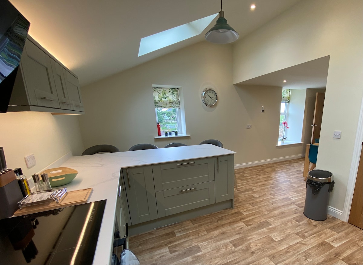 * Check in from 1pm * Early check in available from 11am (pre-booked) for £50 * Late checkout on a Sunday up to 12pm * EV Charging (pre-booked) £20 * perfect for family gatherings, celebrations & wedding stays , open plan * set within private estate grounds ideal for group getaways near the Peak District * Dog friendly * King bedroom with en-suite shower * Double Bedroom * 2 single bedrooms * Family bathroom and shower room * Balcony * Smart TV * Free Parking
