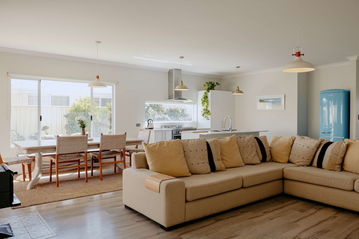 Holiday@peel es el lugar ideal para que familiares y amigos se escapen y se relajen. La casa está escondida, lo que te ofrece un entorno tranquilo y, al mismo tiempo, tienes toda la atmósfera de estar muy cerca de todo. A pocos pasos de distancia se encuentra la calle principal, Busselton Jetty y la costa. Disfruta de una deliciosa comida y café en la cercana cafetería The Good Egg. Pasea por la carretera hasta el histórico Museo Busselton. Hay algo para todos. Nota: El número total de huéspedes permitidos es de 6, incluidos los bebés.