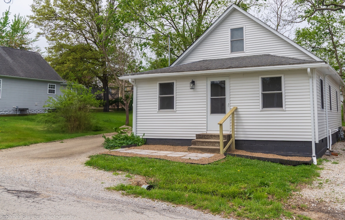 Need a break? Some time to relax and breathe? Come get away from it all at this TINY HOME in the woods. Roast s'mores around the fire pit, go kayaking on nearby Carlyle Lake, stargaze on the porch swing with a cozy blanket...or just cuddle up and binge watch your favorite shows in front of the fireplace. Fully updated with everything you need: full size washer/dryer, stocked kitchen, smart TVs, wifi, outdoor grill, 2 RV hookups, space to park a boat - conveniently right off of I-70!