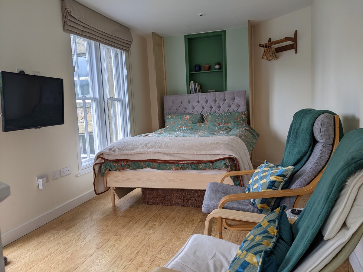 Disfruta de tu propio acceso privado a través del jardín del patio a este anexo independiente. Un dormitorio, zona de cocina pequeña y cuarto de ducha tienen todo lo que necesitas para disfrutar de los Picos y relajarte después. En los meses cálidos, puedes tomar el sol en el patio y hay espacio para guardar cualquier bicicleta. Senderos para caminar desde la puerta y a pocos pasos del centro de la ciudad con buenos restaurantes, bares, la Ópera y los famosos Jardines del Pabellón. Desayuno complementario para alimentar tu mañana.