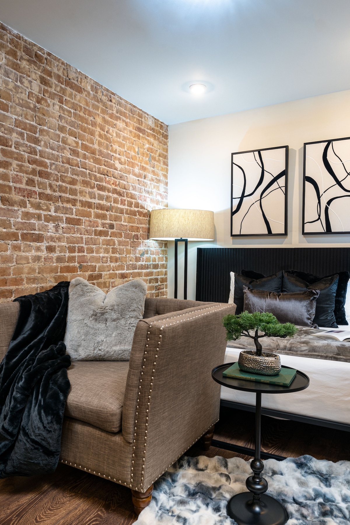 ⭑ Bienvenido a The Black & Gold ⭑ Esta elegante suite de dos dormitorios y dos baños cuenta con ladrillo visto, vigas de madera originales y una amplia zona privada al aire libre, que combina el encanto de Nueva Orleans con la comodidad de lujo. Perfecto para parejas, amigos o grupos pequeños, The Armstrong incluye una cocina totalmente equipada, comedor interior para seis personas y una luminosa sala de estar en el corazón del Warehouse District. A solo unos pasos del barrio francés, es la base perfecta para explorar la ciudad.