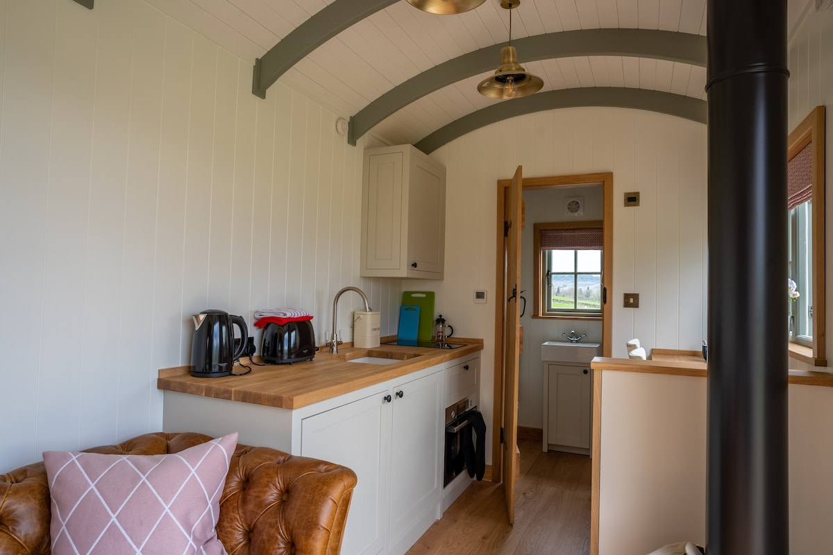 Esta no es una cabaña de pastores ordinaria, ya que cuenta con su propia bañera de hidromasaje con estufa de leña en la terraza privada con vistas al arroyo y los bosques. En el interior, la sala de estar tiene una cocina bien equipada, sillones, una mesa desplegable y una gran cama tamaño king. También cuenta con una amplia ducha. Además, tendrás acceso a la chimenea, kayaks de cortesía, tablas de paddle, canoa y bote de remos durante tu estancia. Las estancias de una noche están sujetas a un suplemento de 35 £ que se añadirá a tu reserva una vez que la hayas realizado.