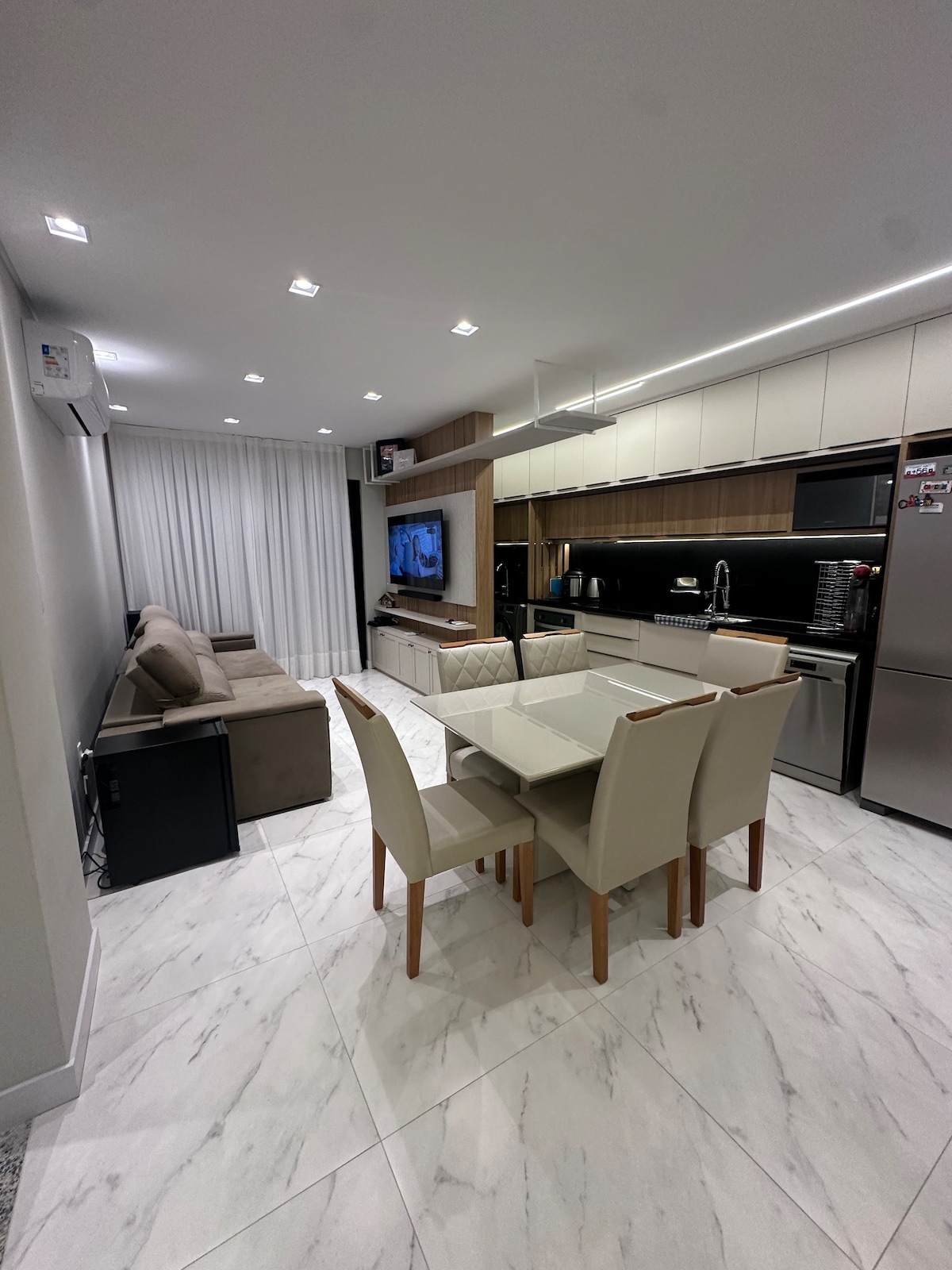 Apartamento Aconchegante com Sacada e Churrasqueira 🌊✨ Nuestro departamento es amplio, espacioso y perfecto para aquellos que buscan comodidad, tiene: Un dormitorio con una cama doble en caja y aire acondicionado y un armario; Sala de estar con Smart TV, Netflix y Wi-Fi, integrada en la cocina con todos los utensilios y electrodomésticos que necesitas; Un baño; Un encantador balcón con vistas panorámicas a la playa, con una barbacoa ideal para el ocio.