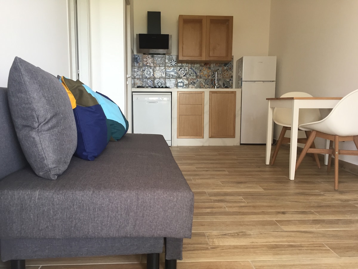 Studio Anatólio è un accogliente monolocale per due persone nel cuore del centro storico di Castellammare del Golfo. Arredato con cura in stile minimalista e mediterraneo, offre un ambiente raffinato e luminoso. La cucina funzionale, il bagno moderno e un balcone con vista mozzafiato direttamente sulla spiaggia. Il balcone si apre su uno spettacolo unico: il mare a pochi passi e un’alba che illumina dolcemente la costa, regalando un risveglio lento e autentico.