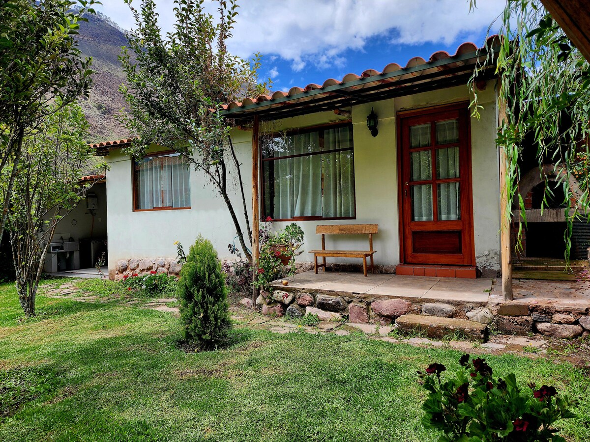 Nuestra casita en el Valle Sagrado es un refugio de paz rodeado de amplias áreas verdes y montañas imponentes. Destaca por su jardín natural, biohuerto y espacios abiertos diseñados para el descanso y la conexión con la naturaleza. El jacuzzi al aire libre permite relajarse bajo el cielo andino, creando una experiencia auténtica, tranquila y especial. Ideal para parejas y viajeros que buscan calma, privacidad y desconexión total. cuenta con garaje y buen wifi. tiendas cercanas.