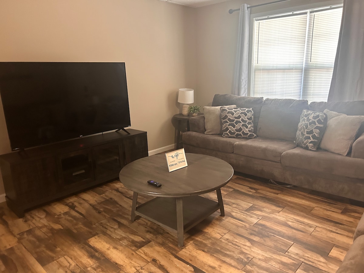Experience luxury in a newly designed loft suite on Jacksonville’s Historic Square. Located above Tulip Café and Lounge Salon, you’re steps from restaurants, shops, and a short walk to JSU and the stadium. Enjoy full kitchens, fireplaces, and beautiful views from every room. Just 30 minutes from Talladega. Please note: second floor not ADA accessible. This spacious one-bedroom offers a larger living area and premium layout, perfect for longer stays or guests wanting extra room to relax.