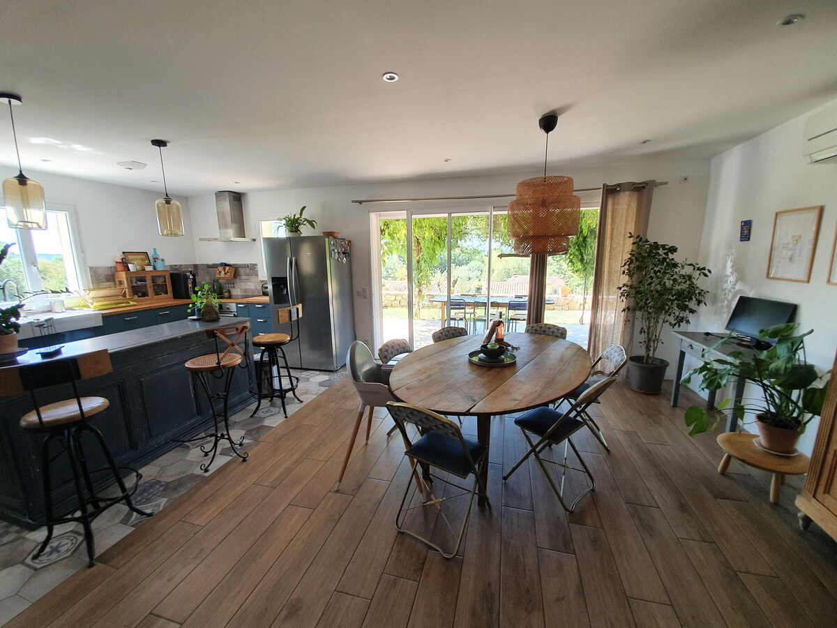 Maison de 2017 dans quartier calme proche du lac de St Cassien. Sur Terrain de 2100m² non clôturé. Grand espace de vie de 55 m². 2 chambres avec lit 140 cm donnant au sud sur la terrasse. 1 chambre enfant avec lit 140cm, 1 suite parentale ( lit 160cm ) avec salle de bain donnant au sud sur la terrasse. Climatisation partout. Piscine avec pool house et barbecue. Grande terrasse dont 25m² ombragé sous la tonnelle Possibilité de garer plusieurs voitures devant la maison. Salle de sport.
