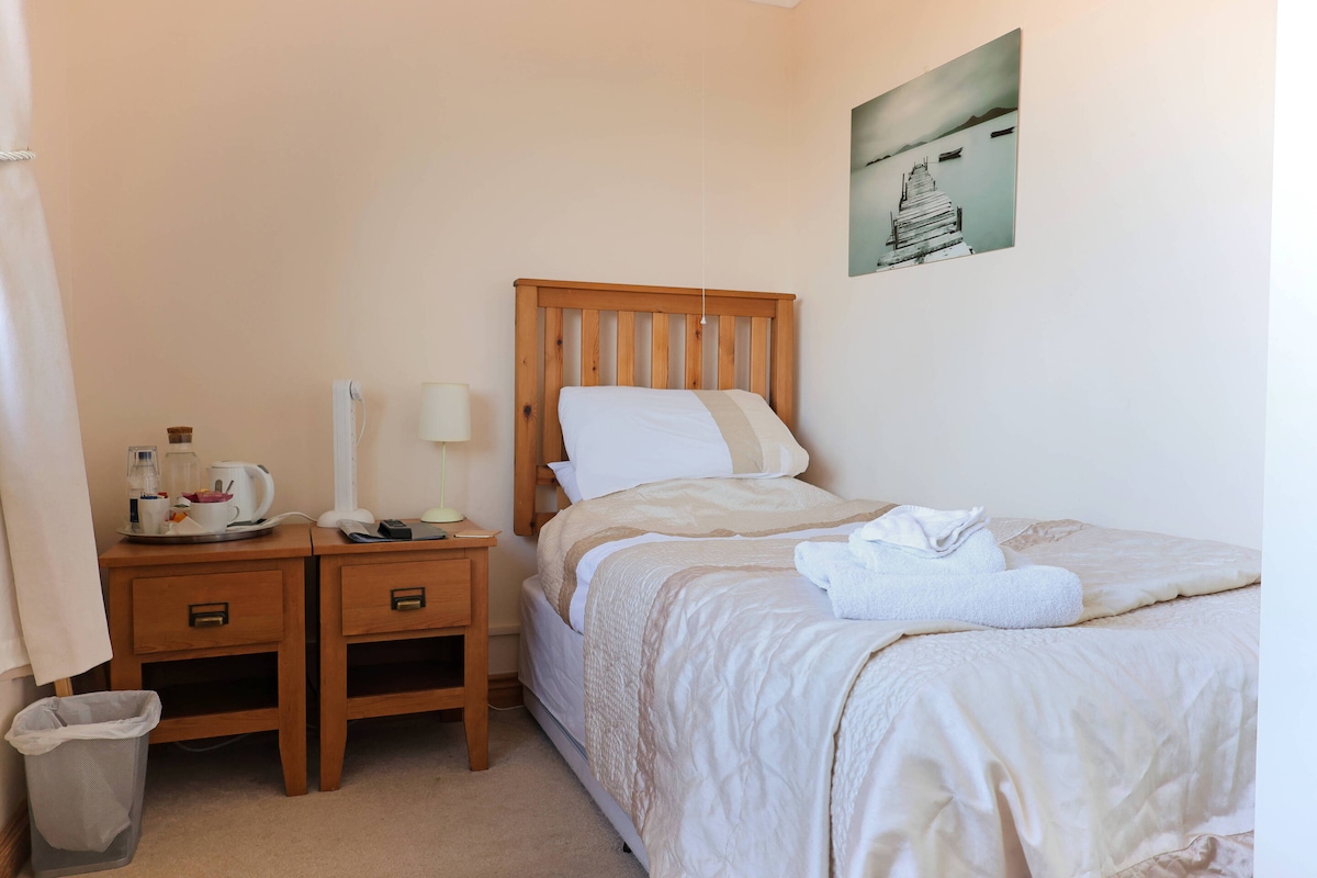 Stylish private twin bedroom in the Dial House Bed & Breakfast. Tastefully decorated throughout - shower - wifi - TV.. English breakfast included - prepared freshly by your host and chef Yosita. Extra child/teen bed available. For larger groups, there is a further Double bedroom for 2 additional guests. £40pp surcharge for guests 3-4-5. Please note: there is one toilet/shower room for both rooms, located inside the front of the twin room, shared within your group, but not other guests.