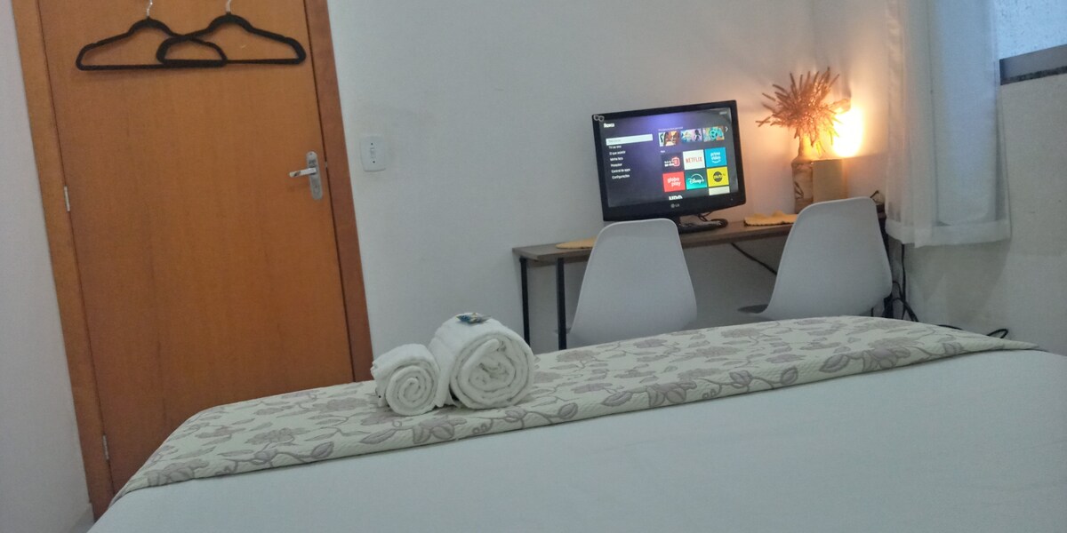 Alojamiento en una habitación a unos 500 metros del Parque do Povo, donde se encuentra el Mayor São João do Mundo. El alojamiento cuenta con cocina completa, baño privado, TV, wifi, ventilador, ropa de cama, toallas y agua mineral. El edificio está situado en el barrio de Prata, especializado en servicios médico-hospitalarios, a solo 800 metros de la UFCG, en una vía rápida, con acceso a varios tipos de transporte y portería las 24 horas. El edificio cuenta con piscina, gimnasio, garaje cubierto.