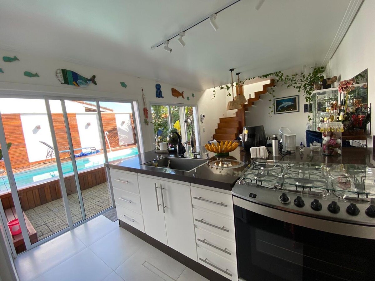 Casa com piscina na praia de Ilha comprida.