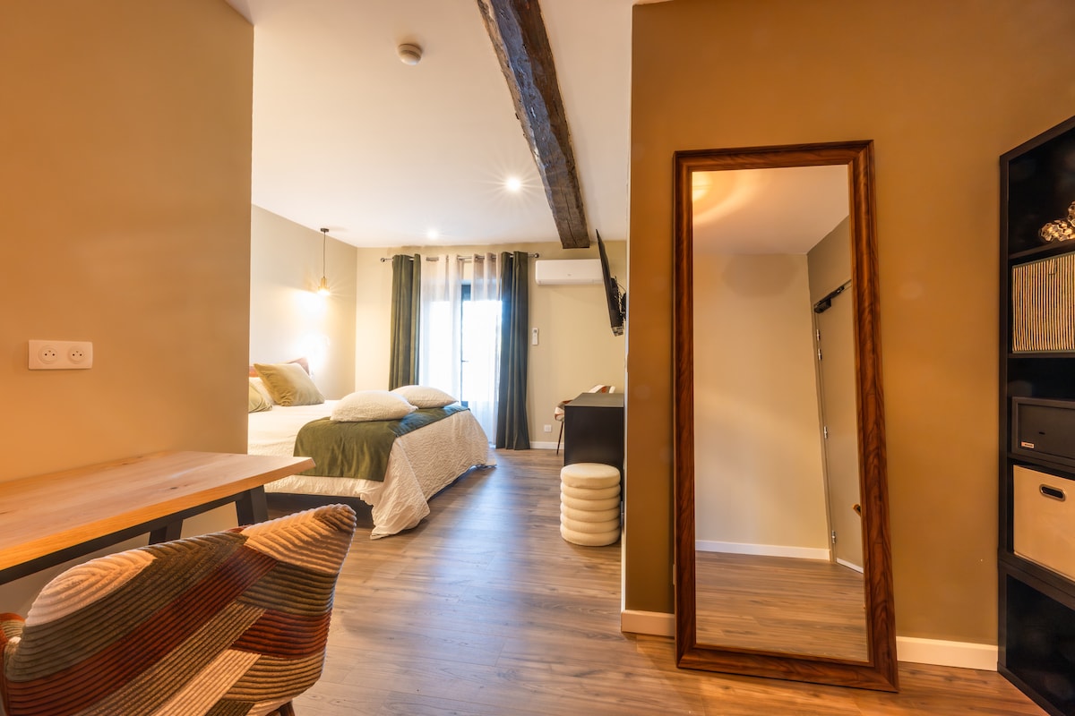 Amplia habitación de 45 m2 dentro de un hotel boutique en Pommard. La Maison de Pommard es una casa vinícola del siglo XVIII reformada por la arquitectura contemporánea. Se encuentra en la Place de l'Eglise, en el corazón de Pommard, a solo 3 km del centro histórico de Beaune y a 5 minutos en coche de la salida de Beaune Sud en la autopista A6. Piscina, jardín, sauna y chimenea están a su servicio. Desayuno incluido en el precio (servido entre las 8 AM y las 10.30 AM)