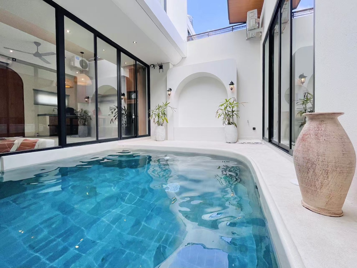 Nuestra residencia de dos pisos captura la esencia de la serenidad, con amplias salas de estar, amplia suite principal con bañera en suite, baño y vestidor, isla de cocina totalmente equipada y piscina privada rodeada de un exuberante oasis tropical. Ofrecemos más que una estadía; creamos experiencias. Disfruta de un relajante masaje en la villa o noches de cine con un proyector y palomitas de maíz. Cada momento está pensado para rejuvenecer e inspirar, creando una estadía única en la tuya.