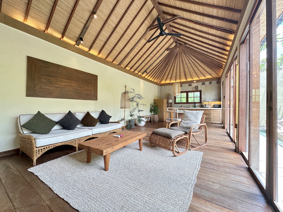 NEWLY AIR-CONDITIONED IN LIVING ROOM SPACE ❄️ Beautiful, Spacious and modern two-bedroom villa in the heart of Canggu. The property features an enclosed living room now with aircon ❄️ A fully equipped kitchen, and a private swimming pool and gardens. Each bedroom includes an ensuite bathroom, air conditioning and quality bedding. Only a few minutes walk away from Canggu's Finest Restaurants, Bars, Beaches, Spas, Gyms and Designer Boutiques, and only 5 min drive away to Pererenan.