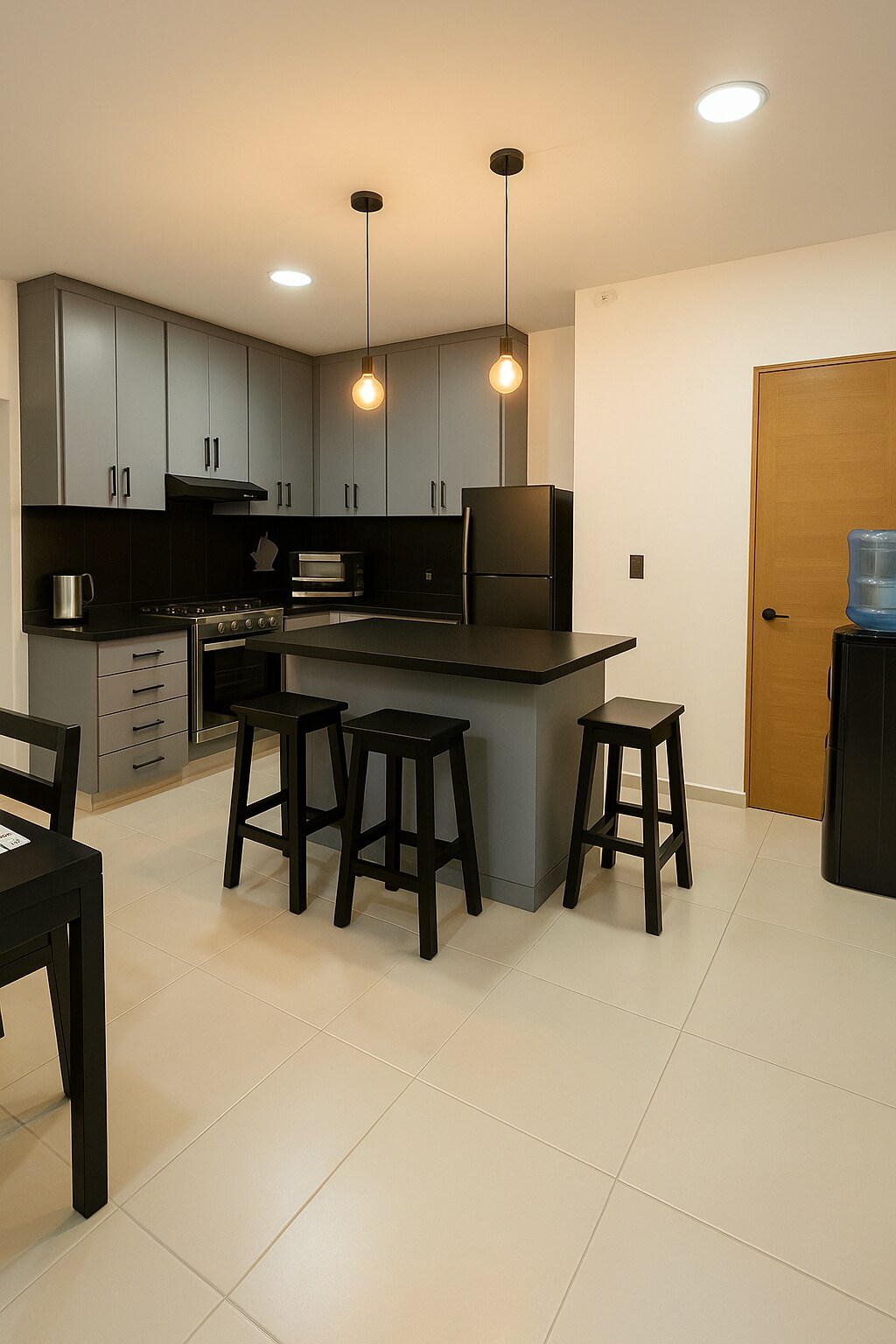 ¡Te damos la bienvenida a nuestro sereno retiro Sousa, Puerta Plata! Nuestro Airbnb de 27 metros cuadrados combina comodidad y funcionalidad. Cuenta con una cocina versátil, una cama elevada con almacenamiento y un balcón de doble propósito. Los tonos dorados y negros resaltan la cocina, con una barra de desayuno personalizada. Los centros inteligentes, el arte local y un centro multimedia con estante flotante añaden toques personalizados. Los tonos blanco, negro y verde crean un moderno oasis tropical. Tu escapada a Sousa comienza aquí.