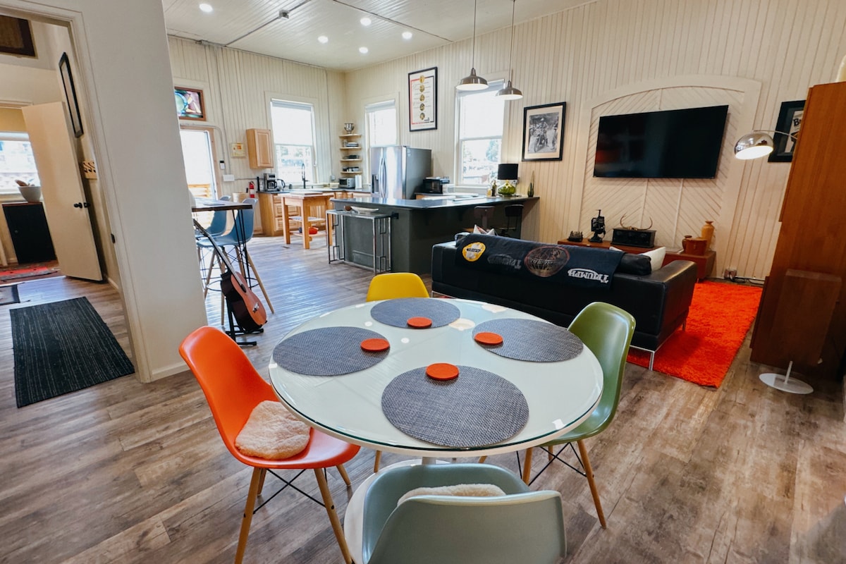 Relájate y desconecta en nuestra casa de campo retro. La casa es una antigua tienda de la década de 1940 para el antiguo huerto de manzanas, y ha sido remodelada para ser un lugar de vacaciones divertido que también usamos regularmente. Sumérgete en esa sensación campestre mientras estás cerca de las tiendas y restaurantes del centro de la ciudad. Tendrás fácil acceso a la garganta real, rafting, escalada, senderismo y ciclismo. El espacio tiene una gran zona al aire libre decorada con arte local. Siéntate en el patio delantero y disfruta viendo el amanecer sobre las montañas.