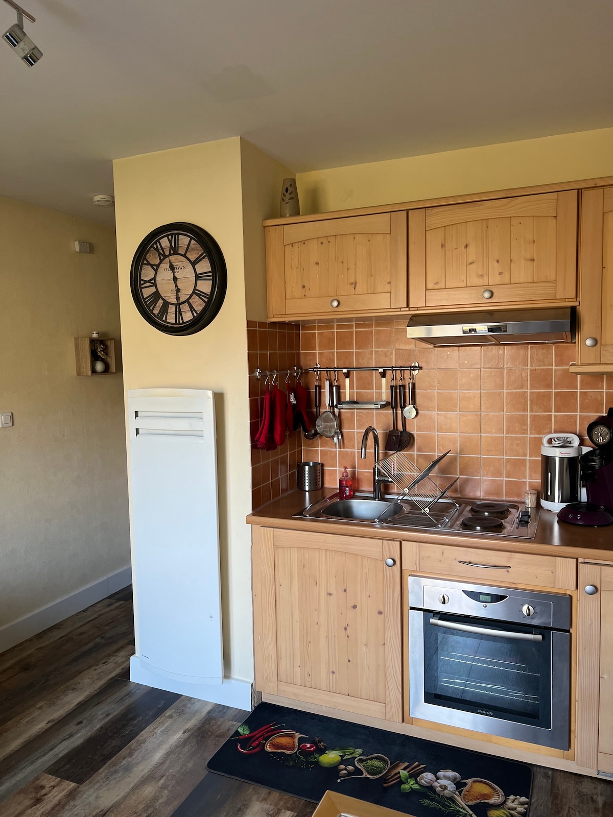 El alojamiento con todas las comodidades está en el primer piso de un edificio situado en el centro del pueblo, por lo que está cerca de todos los servicios y tiendas, pero al mismo tiempo en una calle tranquila y silenciosa. Es luminoso gracias a sus grandes ventanales, y a un encanto rústico gracias a sus piedras a la vista. Aparcamiento gratuito están muy cerca. Todo está listo para su llegada, solo tiene que dejar su maleta y salir a explorar el pueblo.