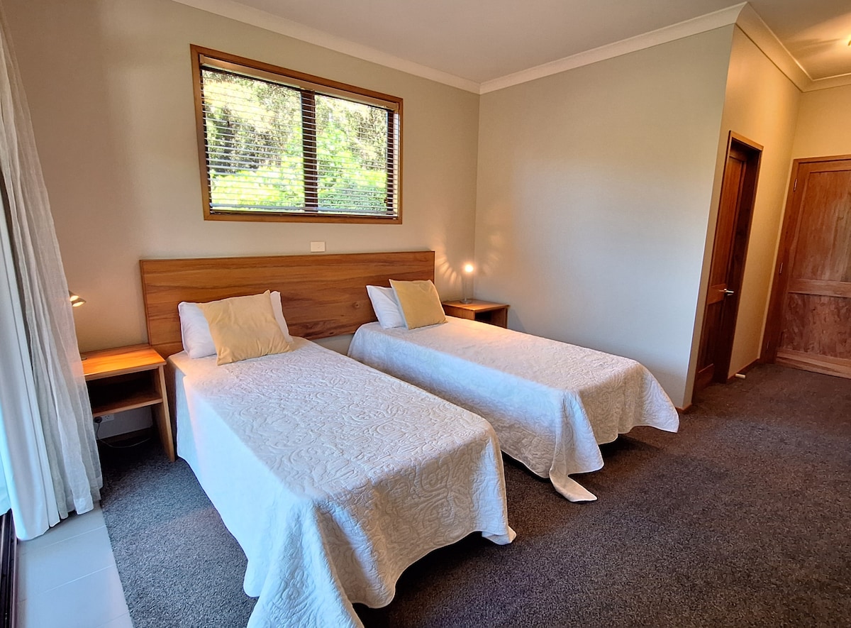 Unidad tamaño queen más una cama individual y baño adicionales que ofrecen una estancia limpia, práctica y cómoda para viajeros solitarios y parejas que buscan una escala fácil o para pasar algunas noches. Las instalaciones incluyen instalaciones para hacer té y café, hervidor, microondas, mininevera y tostadora. La propiedad está a 20 minutos de Franz Josef y ofrece vistas al jardín desde tu terraza, centralizada cerca de una cafetería y tienda de comestibles locales, gasolinera, parque infantil y compañías turísticas, incluidas White Heron Sanctuary Tours.