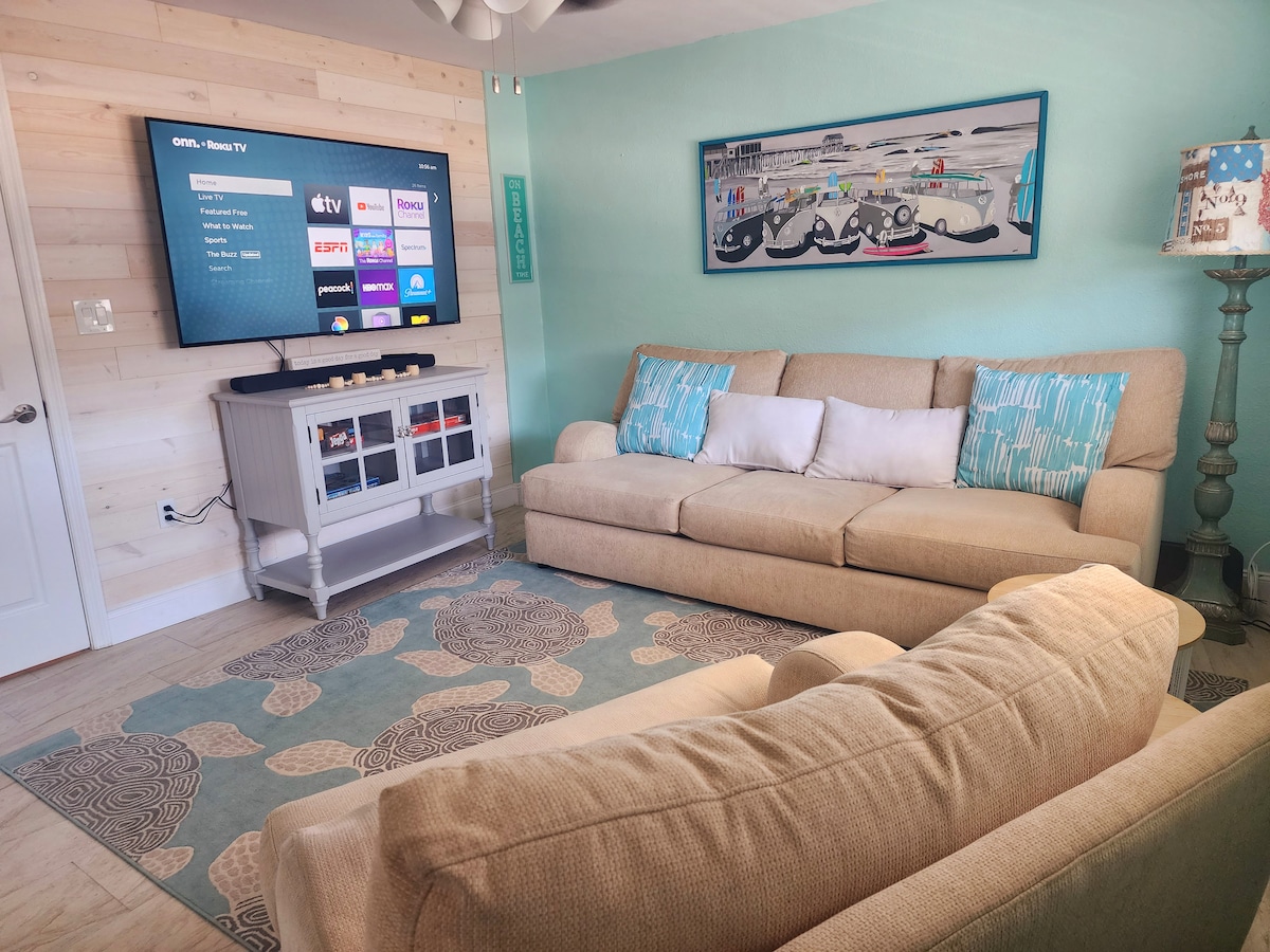 Mantenlo simple en este lugar tranquilo y céntrico. Condominio totalmente remodelado, 2.º piso/escaleras, 2 dormitorios, 1 baño con cocina completa, sala de estar, televisores inteligentes, piscina en las instalaciones, parrilla para barbacoa, lavandería y aparcamiento gratuito. A 1/2 manzana de la playa, 300 pasos/3 minutos a pie de la hermosa playa. Mira un lanzamiento de Space-X desde tu balcón delantero, todo a poca distancia. ¡Completamente nuevo por dentro y por fuera! (1) Se aceptan mascotas, hay una tarifa por mascota y la mascota debe pesar menos de 30 libras.