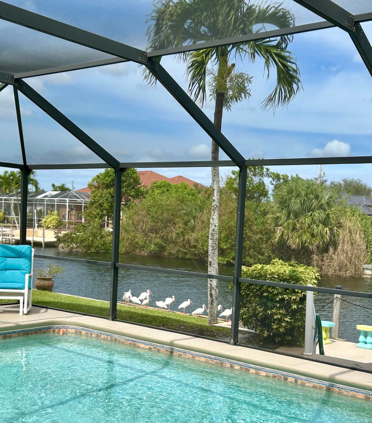 Esta hermosa casa de vacaciones cuenta con una lujosa piscina de agua salada climatizada y un relajante spa con chorros con vistas a un hermoso canal que proporciona acceso directo a tres lagos diferentes con una gran variedad de peces de agua dulce. Es realmente la escapada de ensueño donde los huéspedes vienen a relajarse cómodamente en un entorno tranquilo. ¡Aléjate de todo y disfruta del suave sonido de la brisa de Florida susurrando a través de las palmeras!