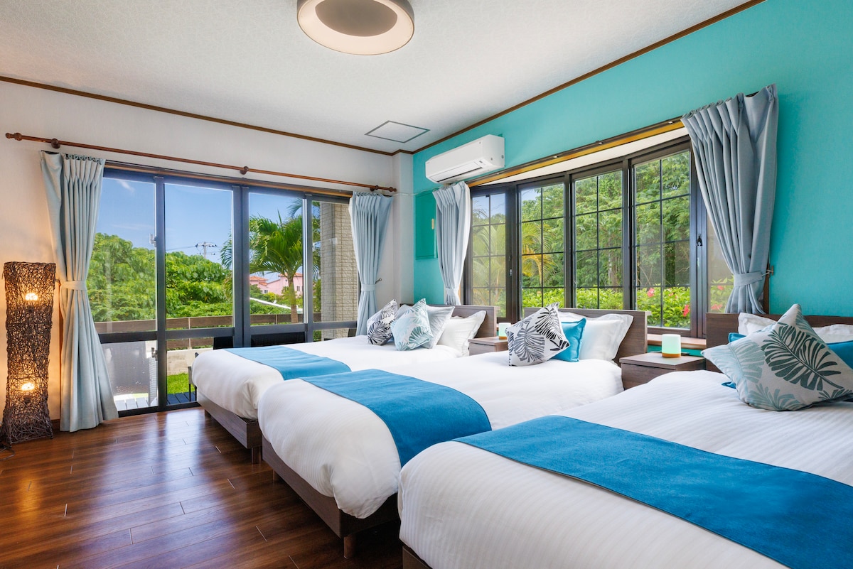 ラナカイハウス ビーチ3分、青の洞窟5分、160㎡オーシャンビュー 16名迄 BBQ ワーケーション