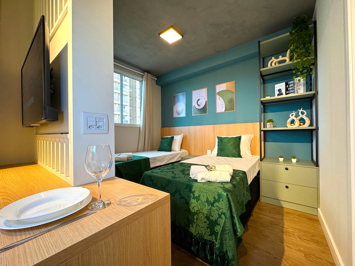 Alójese en un lugar único en la ciudad de São Paulo, construido por Silvio Santos y Construtora Adolpho Lindenberg en la zona noble de Morumbi. El edificio fue diseñado para ser un hotel inspirado en el famoso Maksoud Plaza, pero actualmente es residencial y CON TODAS LAS COMODIDADES DE UNA RED HOTELERA como servicio de limpieza de lunes a sábado, wifi, TV por cable, etc. Perfecto y muy práctico para una persona o pareja. Apartamento muy concurrido, sin flexibilidad en los horarios de entrada y salida