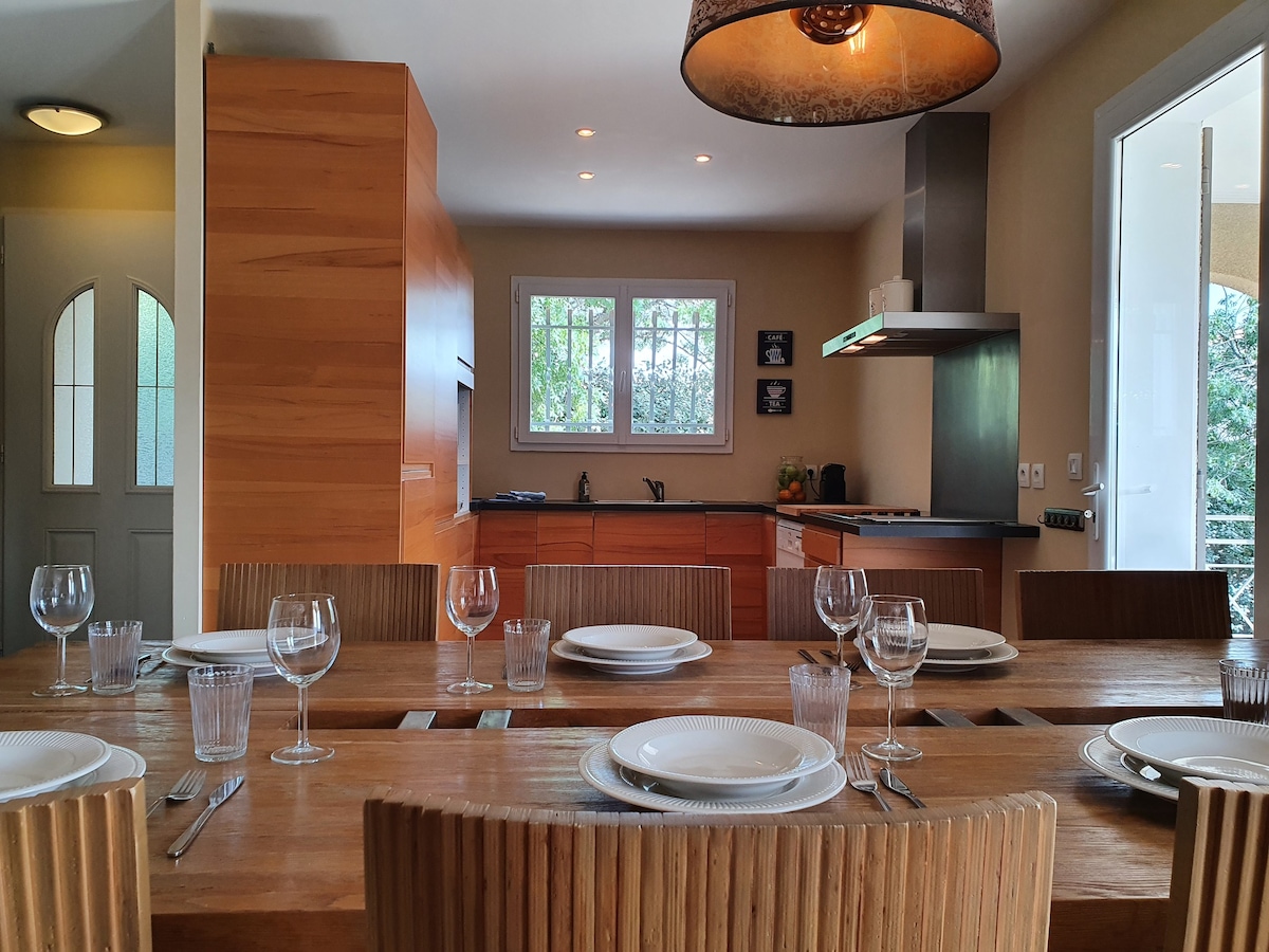 Situada en el corazón del Minervois, en el centro histórico del pueblo de Caunes Minervois, la Maison 5 es el lugar ideal para vivir tranquilamente sus vacaciones. Es una invitación a la dulzura de la vida. Cerca de la ciudad medieval de Carcasona, al pie de la Montaña Negra y a 40 minutos de las primeras playas del Mediterráneo, es perfecta como punto de partida para visitar la región. También puede serlo para una parada durante un viaje de negocios por su funcionalidad.