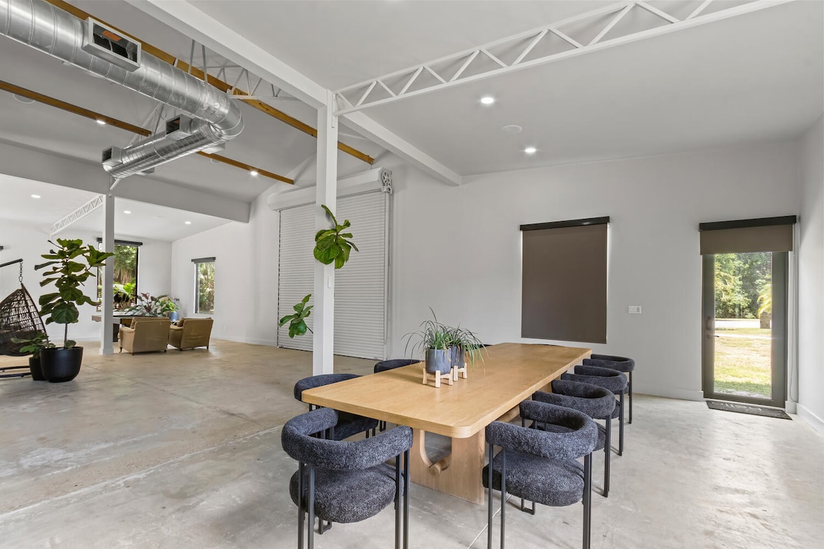 Escápate a un oasis de tranquilidad en Soleil Farms, un alojamiento de lujo en un santuario de animales de 5 acres recientemente remodelado, ubicado en Jupiter Farms, Florida. Ubicado entre una exuberante vegetación y una gran variedad de más de 55 animales de granja rescatados. Disfruta de la naturaleza en este loft reconvertido en un granero de 2500 pies cuadrados diseñado pensando en el lujo y la comodidad. Ya sea que busques relajarte, aventura, vino y cenar, este es el lugar perfecto para disfrutar lo mejor de todo.