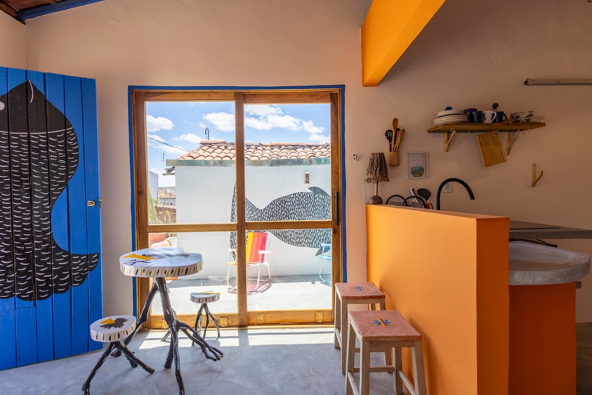 Casinha para los mejores días en Ferro Island, un pueblo artesanal junto al río São Francisco. En Casa Olivia encuentras comodidad para tus días inmersos en este lugar mágico. Habitación con cama tamaño queen y aire acondicionado, baño con ducha caliente, cocina completa y un aspecto impresionante para Old Chico.