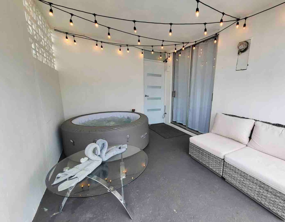 A 13 minutos del aeropuerto y la playa con jacuzzi privado.